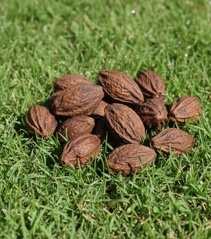 Myrobalans are the dried fruits of Terminalia chebula, a tree common in India. The immature fruits are black, ovoid and about 1–3 cm long. They contain about 20–40% of tannin.